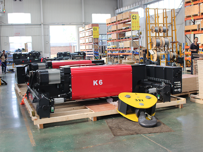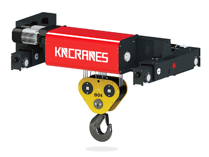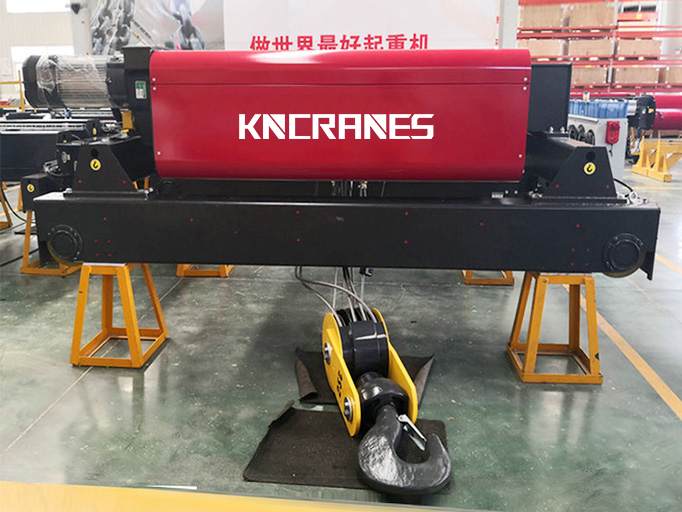Промышленная грузовая тележка представляет собой стационарный подъемный механизм, состоящий из несущей рамы, подъемного электродвигателя, редуктора с закаленными шестернями, канатного барабана, тормозной системы, канатоукладчика, системы ограничителей и пульта управления. Конструкция рассчитана на длительную работу в тяжелых режимах эксплуатации. Применение закаленных шестерен продлевает ресурс редуктора до 50 000 моточасов.