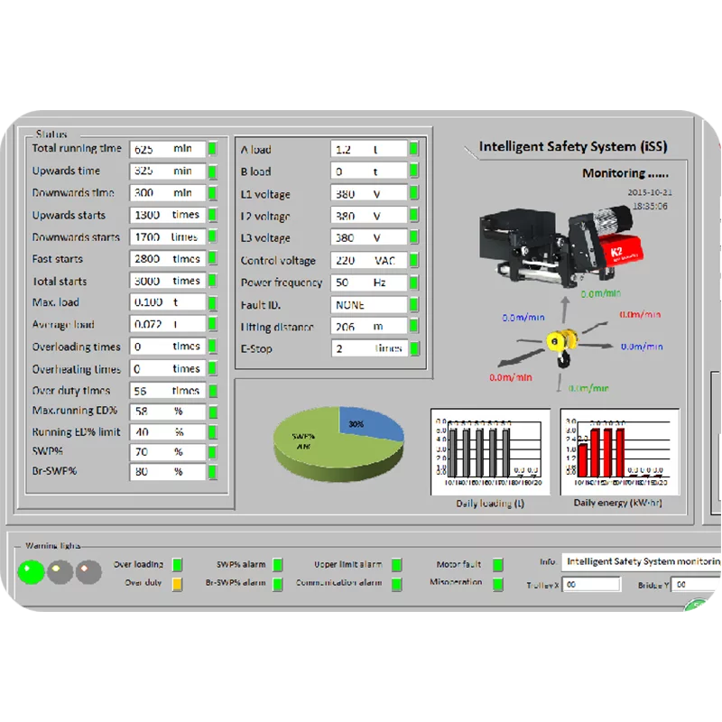 Беспроводная передача данных через аппаратные модули позволяет пользователям удаленно контролировать оборудование и проводить анализ данных в реальном времени. Этот интеллектуальный подход к управлению не только упрощает традиционный процесс ежегодной инспекции крановых систем, но и значительно повышает эффективность обслуживания и снижает эксплуатационные расходы.