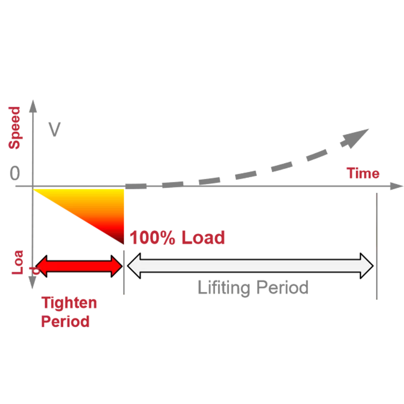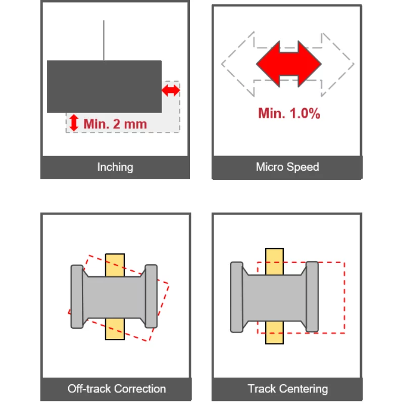 Когда груз приближается к месту назначения, кран перемещает его с точностью до заданного микрорасстояния (2–100 мм) и автоматически останавливается. При каждой операции крюк поднимает или опускает груз на малое заранее заданное расстояние. Например, при установке инчинга 2 мм груз поднимется или опустится ровно на 2 мм и автоматически остановится.